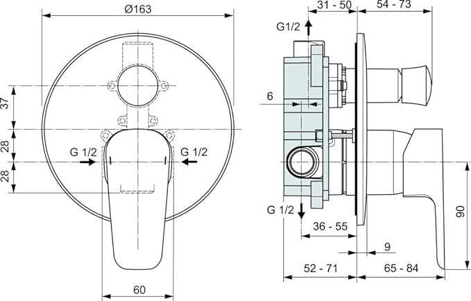 • عدد المقابض: 1 (رافعة واحدة للتحكم في الحرارة وتدفق الماء)