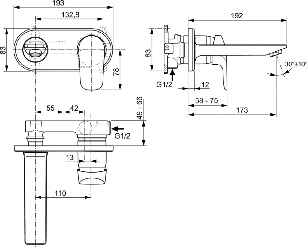 خلاط دفن على الجدار بلا قلب ايديال ستاندرد سيرافليكس A6941AA